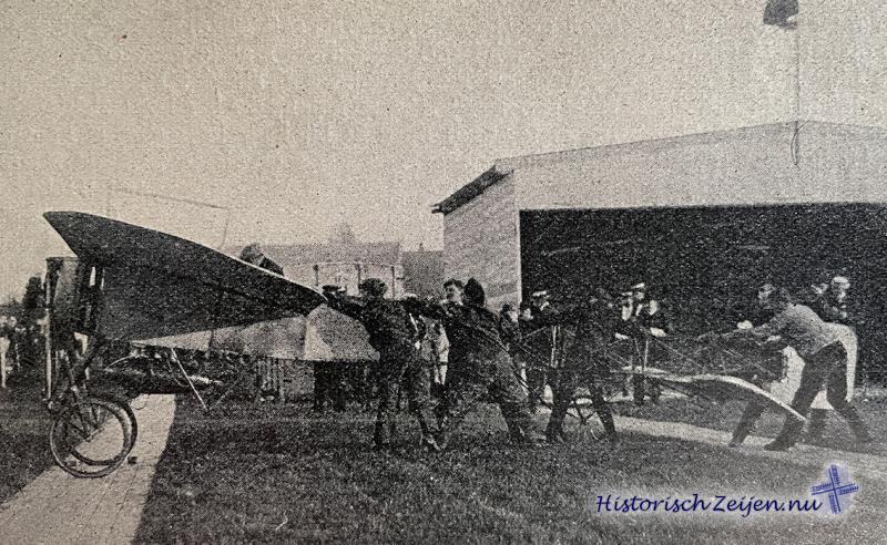 Het plan bestaat, om in een hangar, die achter de biljartfabriek van den heer De Schepper wordt gebouwd, een geheel nieuw vliegtuig (monoplane) te construeeren, in vele onderdelen afwijkend van de bestaande modellen, maar in hoofdzaak toch overeenkomend met het type-Blériot.