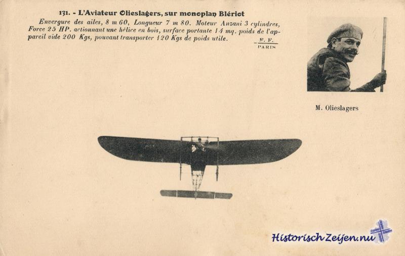 Wel ware de Groningers niet de eersten, die 'n vliegtuig in Nederland lieten komen, evenmin waren zij 't, die den eersten Nederlander zouden laten vliegen, maar dat zij hun keuze op Jean Olieslagers lieten vallen, bewees, dat zij iets buitengewoons willen hebben.