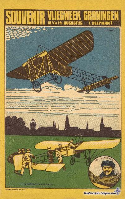 Jean Olieslagers, de alombekende, zou op een terrein te Helpman, bij Groningen, gedurende eenige dagen vliegdemonstraties geven.